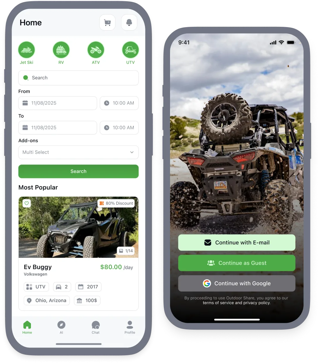 Full Booking software with custom "garage". Bring your customers to your partnered custom branded store. Booking through the OutdoorShare software makes all of these resources possible